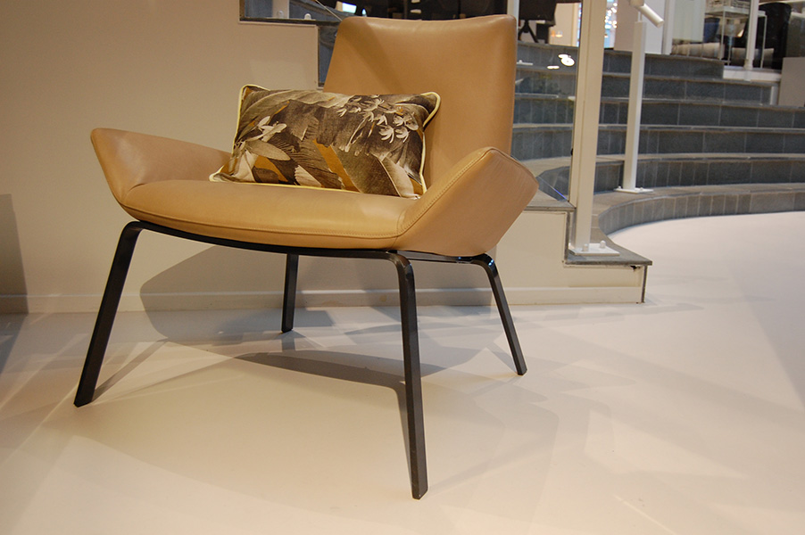 Zitting Fox clay leder. Op een zwart onderstel.