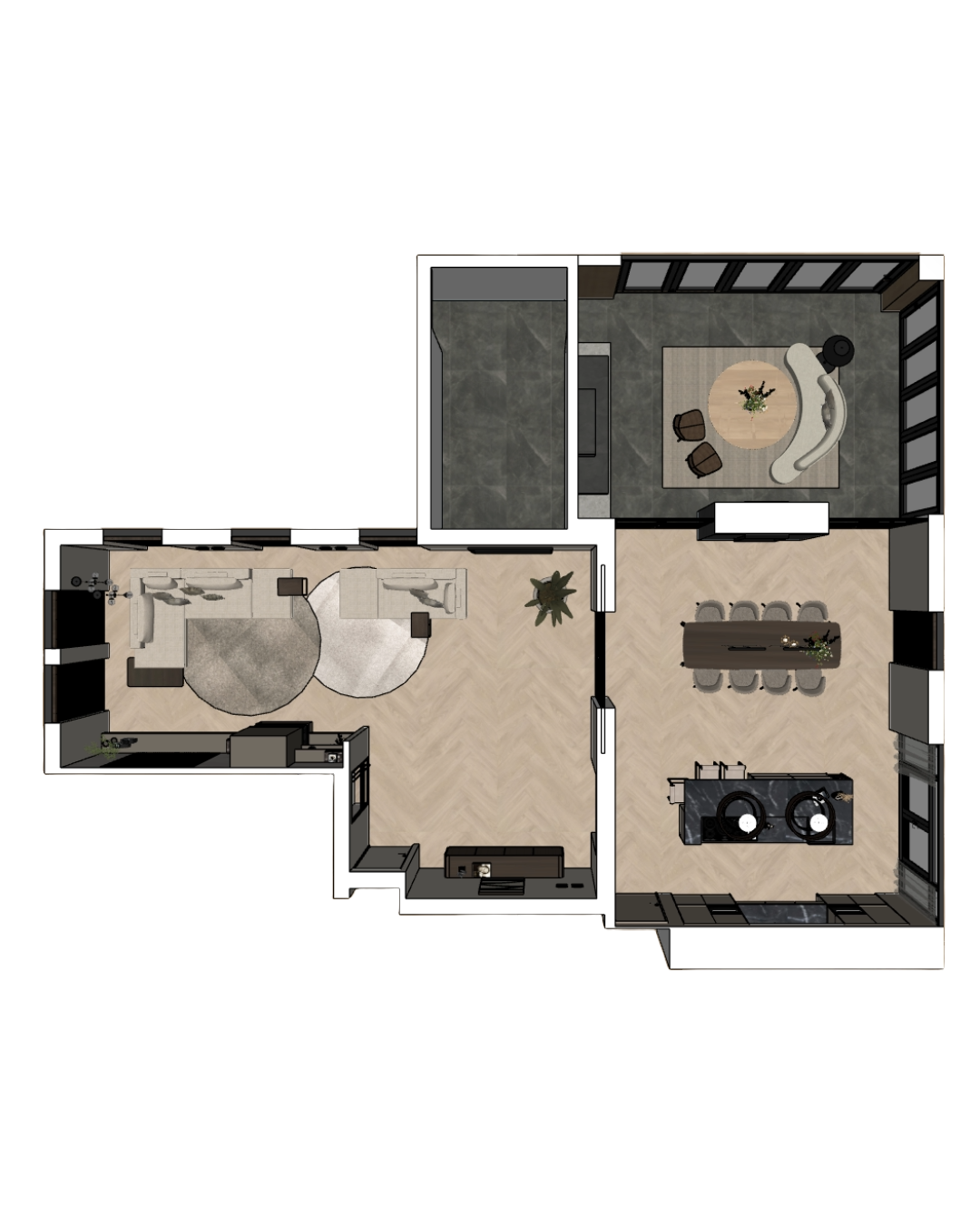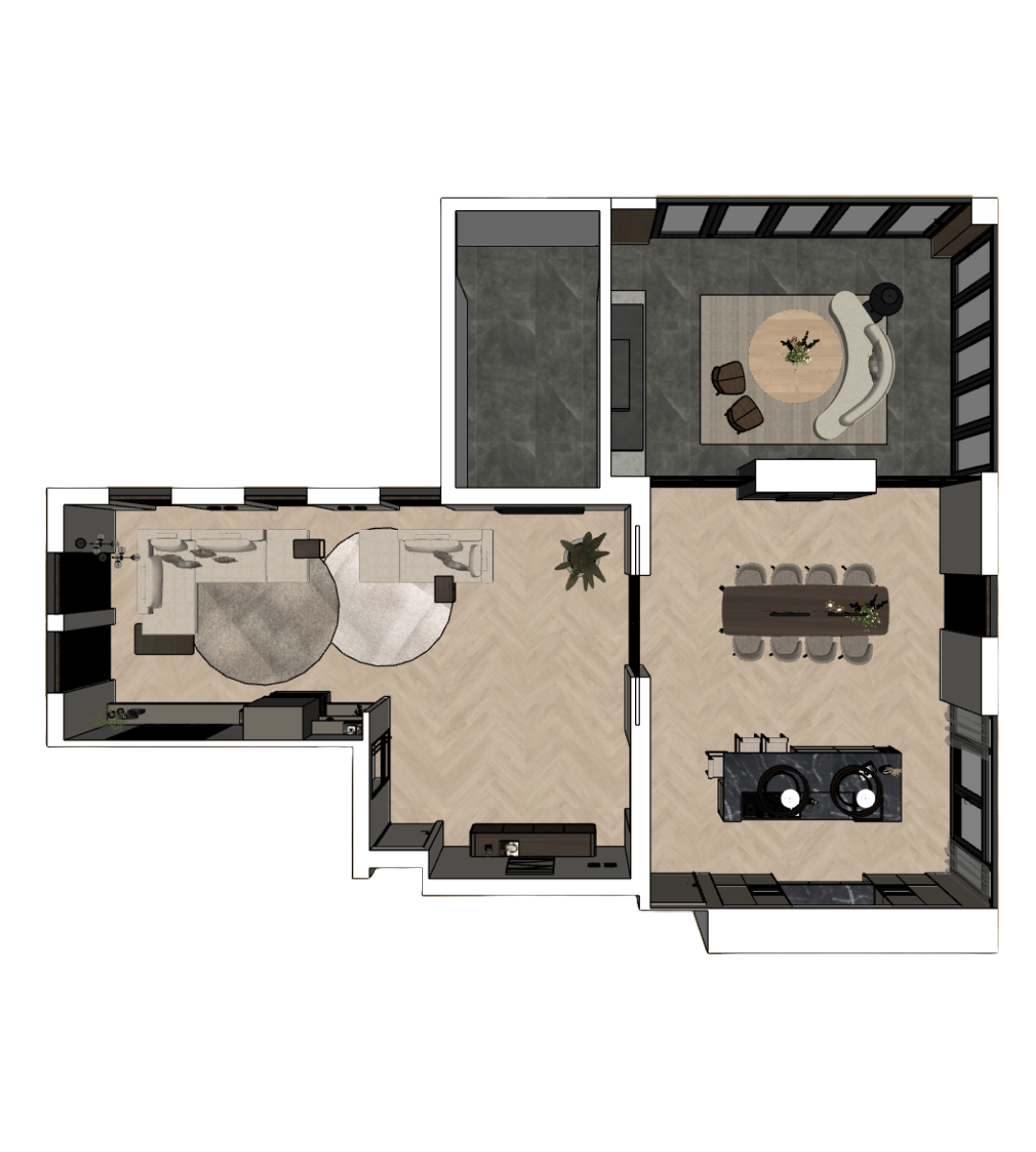 Een uitgewerkt interieur ontwerp